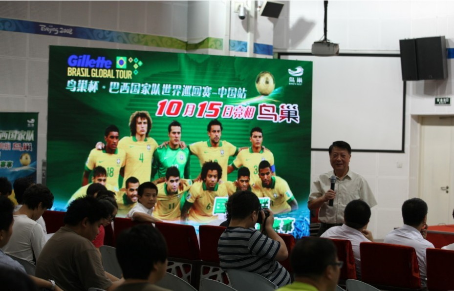 北京时间2013年8月28日,鸟巢杯巴西热身赛举行发布会,10月15日晚,国家体育场“鸟巢”将迎来一场足球重量级比赛:2014年世界杯东道主、夺冠大热门巴西国家足球队,将在此与一支非洲劲旅(赞比亚或加纳)进行一场国际足联A级比赛,启动他们志在六次夺得世界杯冠军的重要战备。