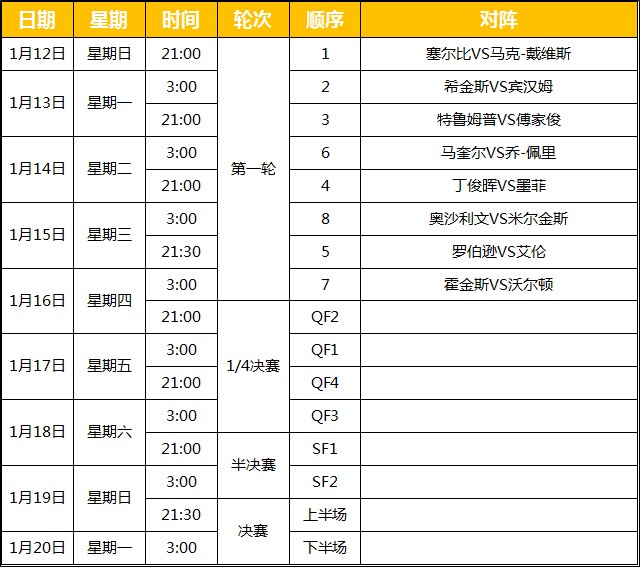 2014斯诺克大师赛赛程 14日21点丁俊晖PK墨菲