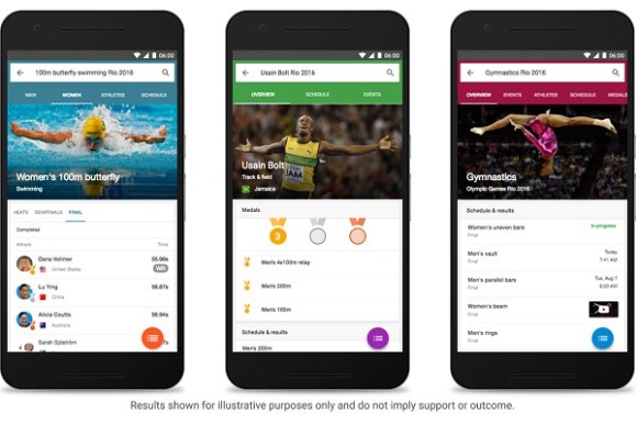 届时当用户在搜索与奥运相关的信息时——包括赛事安排、运动员、奖牌数等——都将能够看到详尽的信息。当然,你也可以安装Android和iOS版的 Google App,登录并自动获取赛事提醒。