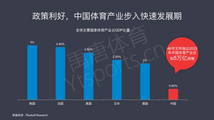 在这中间,禹唐体育选择了体育营销进行切入,将打造“中国体育营销第一平台”作为了企业发展的目标。就像我刚刚提到的,体育产业已经成为了国策我们无需多言,那么我们为什么会选择体育营销呢?