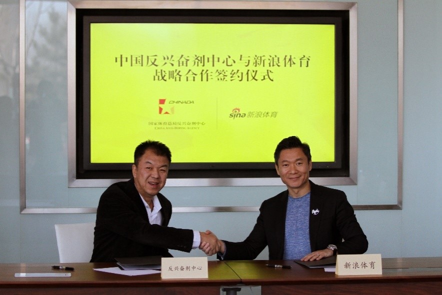 2016年12月28日,国家体育总局反兴奋剂中心(以下简称“反兴奋剂中心”)与新浪体育正式签署战略合作框架协议。在本协议下,新浪体育将在新浪网体育板块搭建中国反兴奋剂互联网专题页,并为其提供互联网传播平台。同时,新浪体育作为反兴奋剂中心战略合作伙伴,将反兴奋剂中心有关的重要活动及事件进行深度专题报道或访谈。
