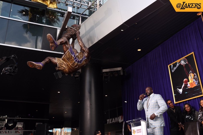 湖人为鲨鱼立雕像名宿云集
