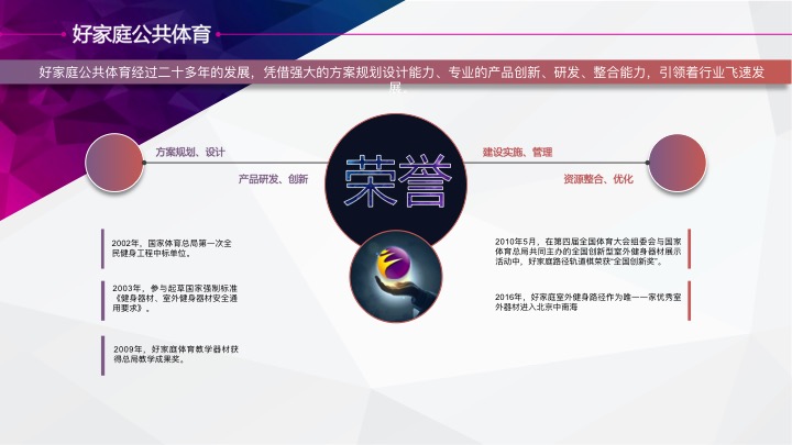 首先在公共体育服务部分,好家庭为国家提供了包括健身路径、多功能足球场以及轨道棋等公共体育产品。去年,只有好家庭的健身路径走进中南海,这无疑是对其产品品质的极高肯定。