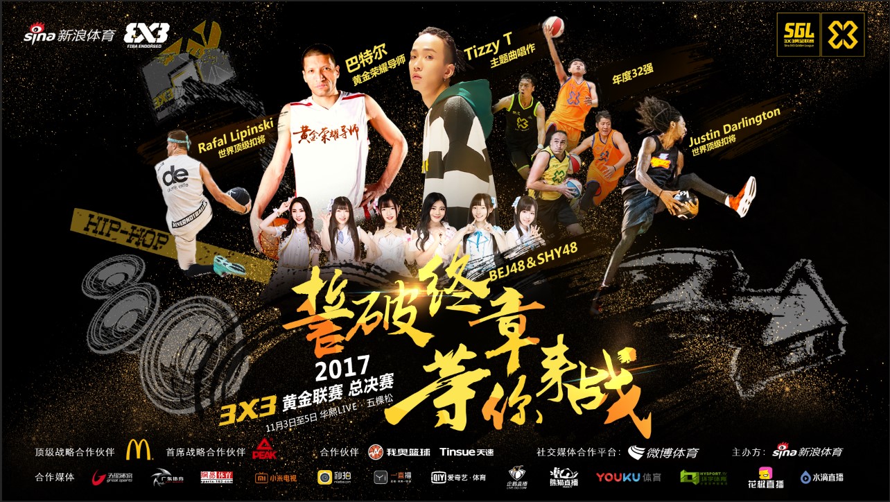 11月3日-5日,中国最具影响力和商业价值的三人篮球赛事——3X3黄金联赛全国总决赛将于华熙Live·五棵松打响。作为国际篮联(FIBA)官方认证赛事,经过近8个月的激烈争夺,代表中国3X3篮球最高水平的32强球队入围了全国总决赛,他们将对亚洲3X3篮球赛事最高的112万元金砖总奖金发起最后冲击, 中国大型女子偶像组合BEJ48和SHY48的少女成员现场将化身“篮球经理”,“黄金荣耀导师”巴特尔将率CBA传奇巨星现场试金3X3草根选手,一场中国三人篮球的年度巅峰对决即将上演。