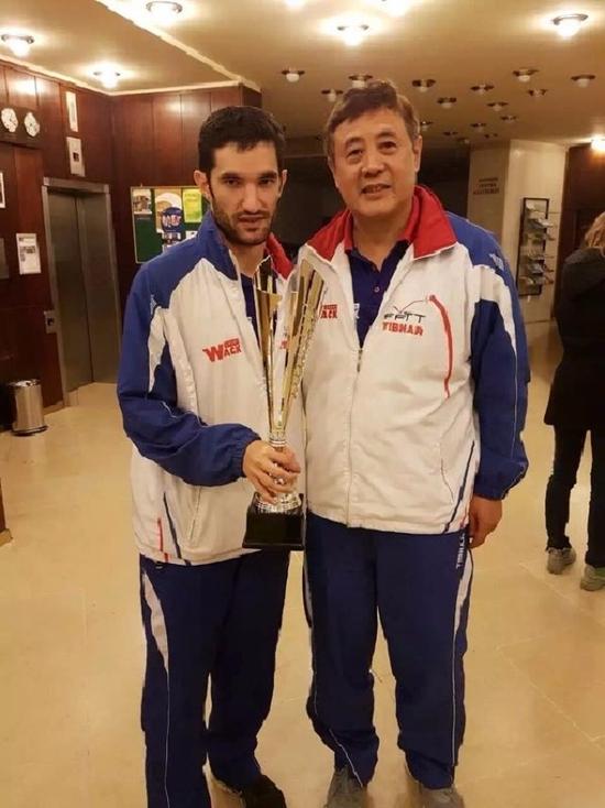 韩华(右)与2016年乒乓球欧锦赛男单冠军莱贝松。韩华提供