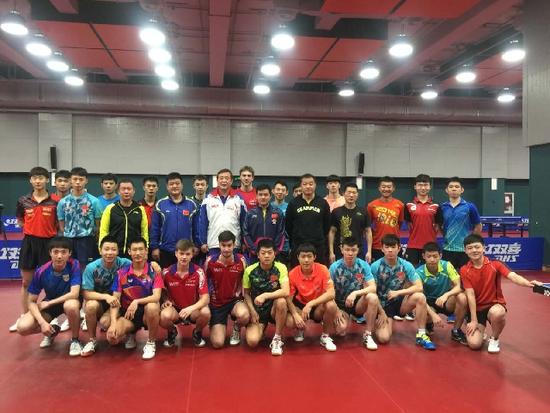 韩华带领法国乒乓球男队在中国集训。韩华提供
