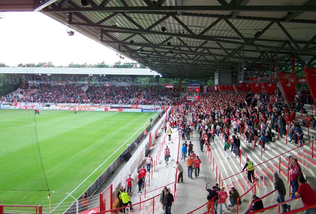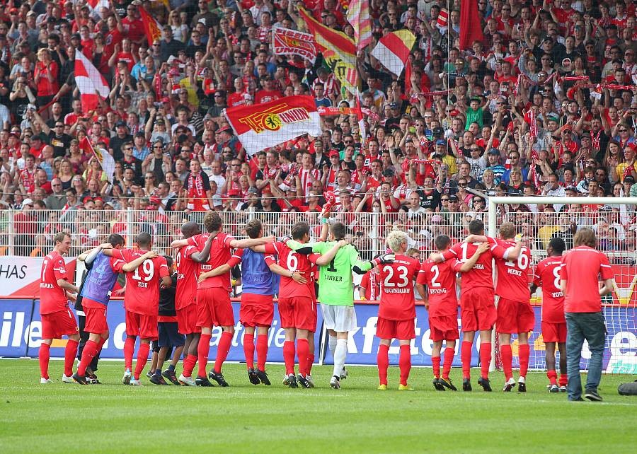 自两德统一以来,柏林联合队一直都还算顺利。90年代表现挣扎的他们最终在2001年进入了德乙联赛,进入过一次德国足协杯的决赛,还参加过一次欧战。2004到2009年,他们在低级联联赛中又呆了一段时间。再次升级之后他们表现稳定,逐渐看到了进军德甲联赛的希望。我所看的那场比赛是德甲第11轮,柏林联合要对阵阵菲尔特队。如果获胜,他们将排在杜塞尔多夫和基尔队之后进入升级区。这可能是柏林联合迄今最好的一次进军德甲的机会了。