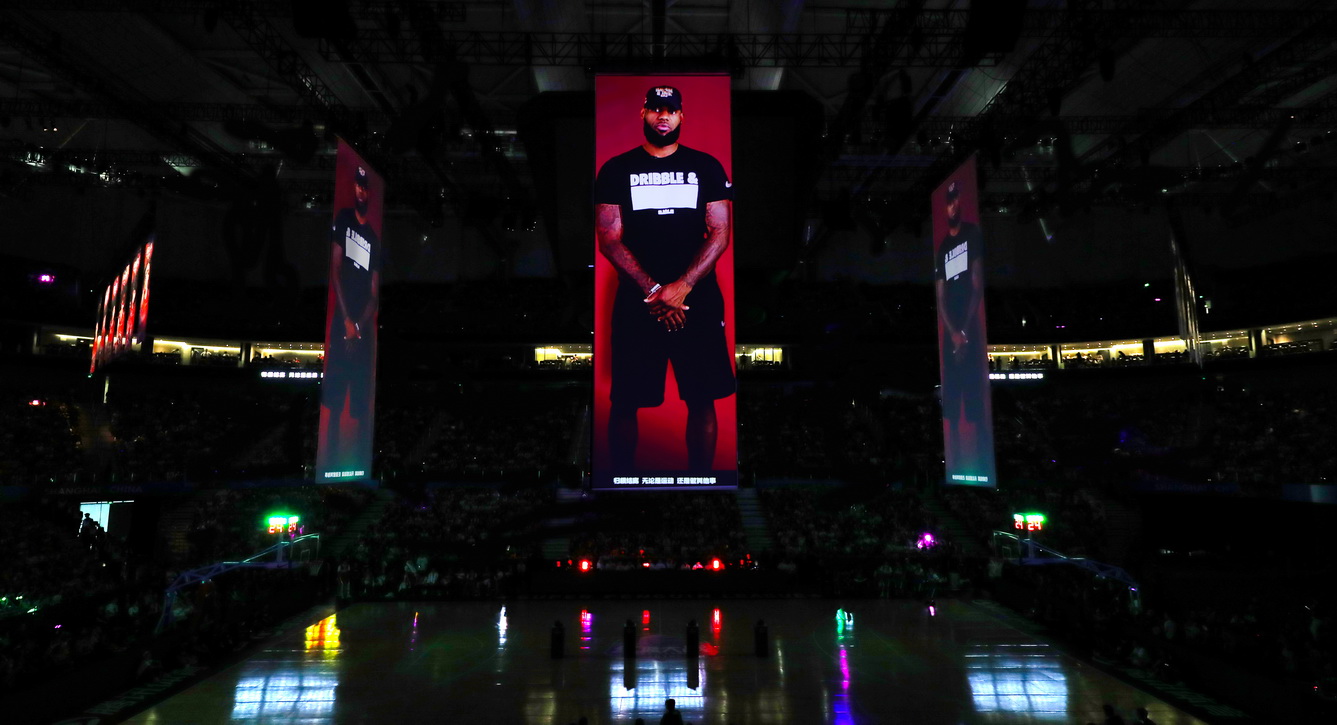 正赛第一节之后的中场休息,詹皇的“现身”可谓是整个活动的高潮,引发现场球迷尖叫不绝。