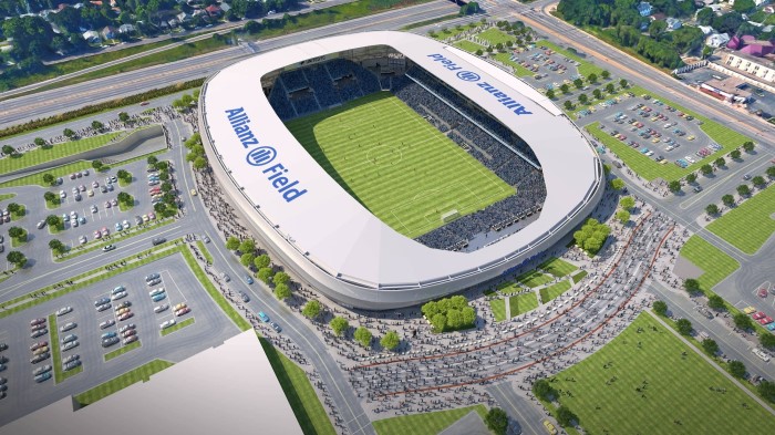 明尼苏达联的新主场——安联球场将于下赛季正式开放,这座球场完全由私人出资,可以容纳19400名观众,而俱乐部将要把这座现代化球场打造成无售票的体育场,球迷完全可以在数字化售票平台上解决自己的需求。这个平台的建立是为了让支持者和合作伙伴在安联球场内的任何一个座位上都能360度观看比赛。该平台是通过一个在线门户网站通过预约方式介绍给支持者的,这个门户网站“让体育场重现生机”。