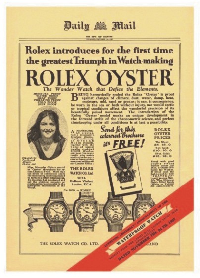 劳力士是体育营销的始祖,早在上世纪20年代,汉斯威尔斯多夫就首次提出品牌代言人和体育赞助的设想。而这种设想在1927年,梅塞迪丝吉莉丝佩戴蚝式腕表横渡英吉利海峡成为现实,此举使劳力士蚝式腕表名声大噪,也成为体育营销的第一例。