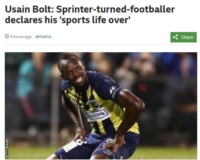 也许是因为在奔向职业足坛的道路上磕磕绊绊,也许是因为自己的兴趣又出现了转变,飞人博尔特宣布自己正式结束职业足球梦。在博尔特的采访中他表示:我已经尝试过了,结果和想象的并不一样,但这是一段美妙的经历,我非常喜欢在团队中,作为团队的一员,这个和在田径场中的感受不同,非常有趣。但是现在我的体育生涯结束了,我要进入完全不同的领域,目前的计划是成为一个商人,还有很多事情在筹备。”