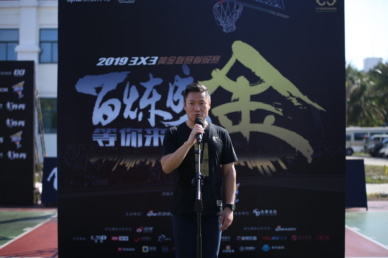 新浪高级副总裁、新浪体育总经理魏江雷在致辞中首先回顾了3X3黄金联赛过去四年的历程及取得的成绩,他表示2018年,3X3黄金联赛成为全球规模最大的三人篮球比赛,连续三年拿到国际篮联认证。2019年是黄金联赛一个新的起点,计划覆盖全国150个城市,超过12万人群参加新浪黄金联赛。最后再次强调新浪体育响应“健康中国战略”,会一如既往将3X3黄金联赛做大做强。同时感谢国家体育总局和三沙市政府对于本次黄金联赛首战落地中国最南端城市三沙市的支持,并预祝所有参赛对于取得好成绩。