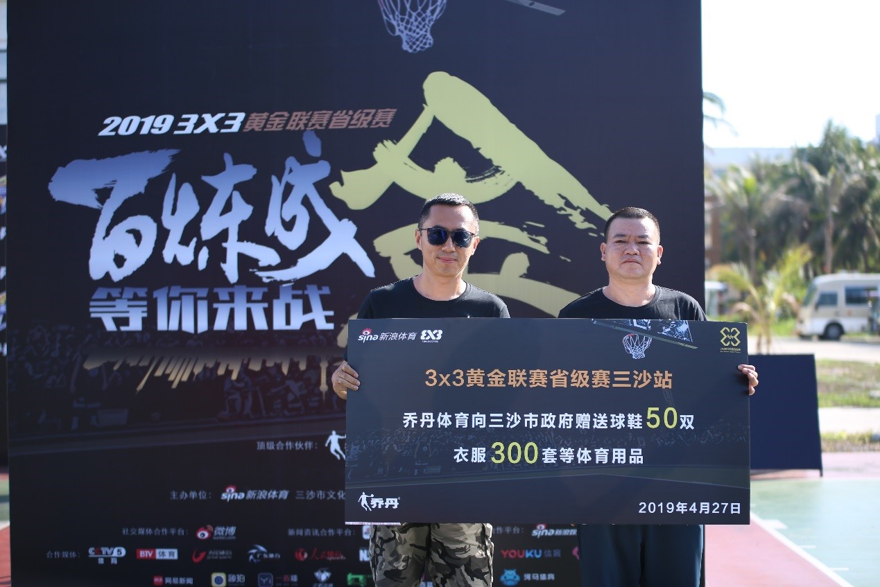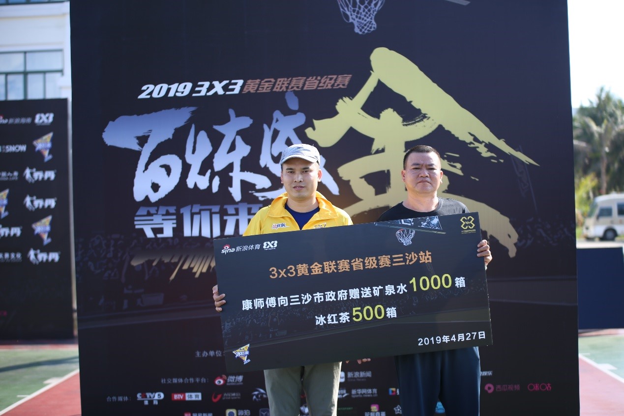 2019年3X3黄金联赛顶级合作伙伴乔丹体育、康师傅冰红茶也参与到本站比赛当中,为三沙军民带来了慰问品。