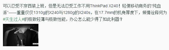 与此同时,ThinkPad新成员X240、X240s应运而生,并以此不妥协的姿态在竞争愈演愈烈的笔记本电脑市场上演了一出天生过人的新品营销连环计。