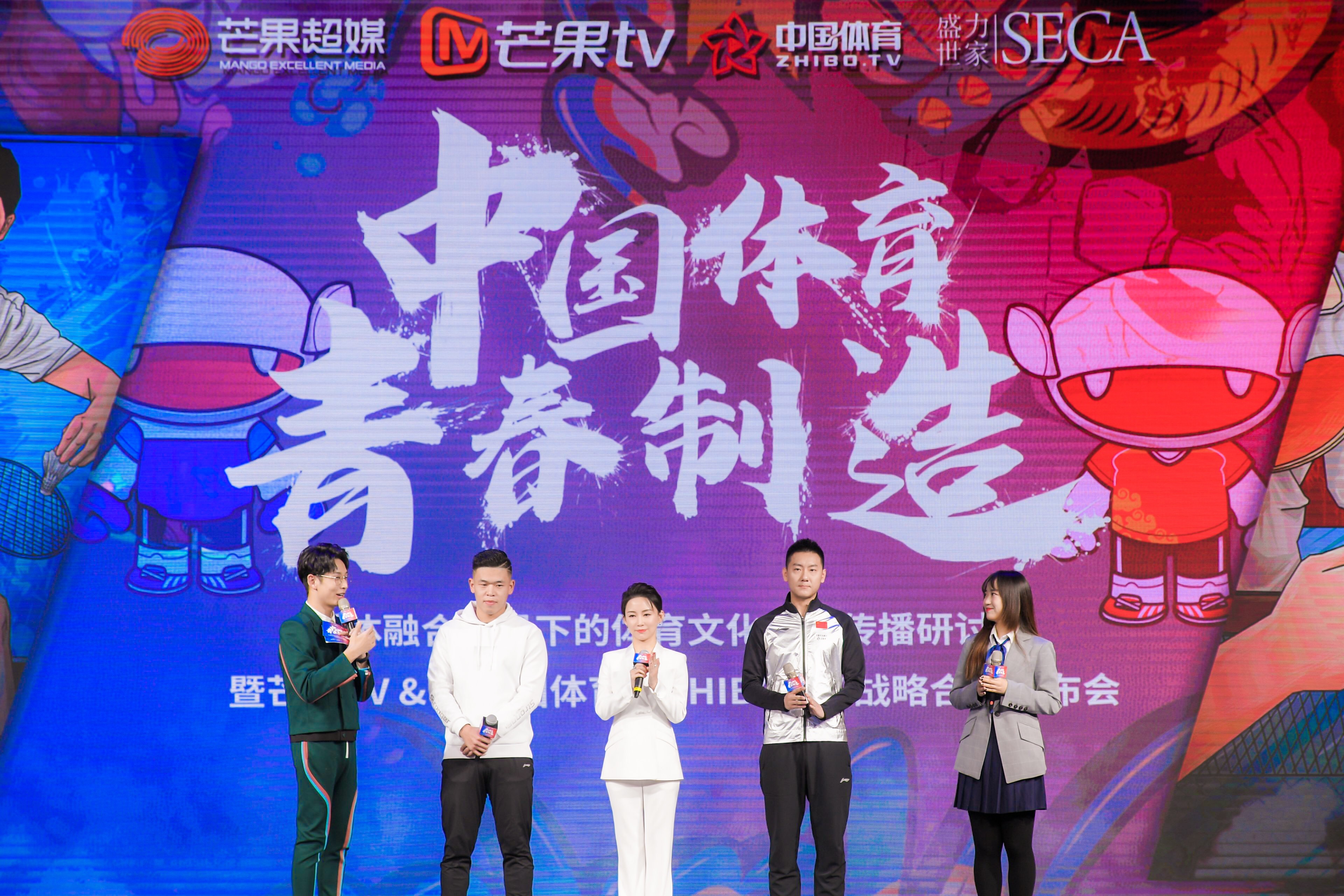 发布会上,芒果TV、中国体育代表与体育名将邓亚萍、潘晓婷、陈金一起共同开启芒果TV与《中国体育》ZHIBO.TV战略合作。