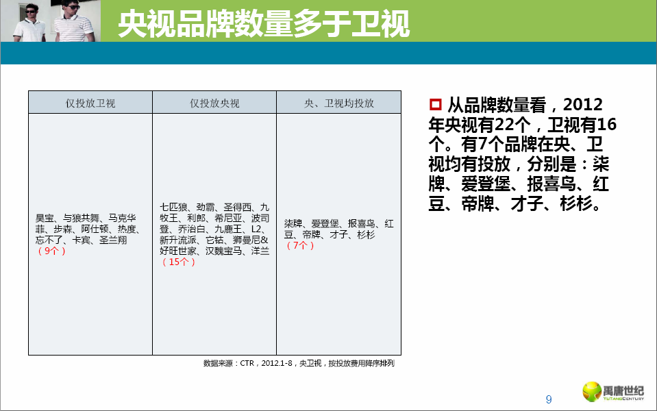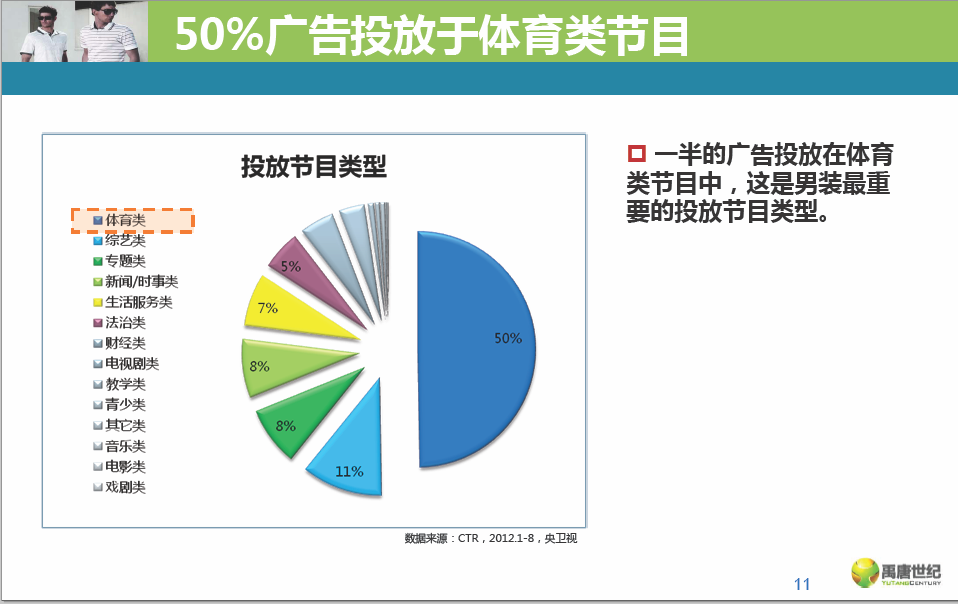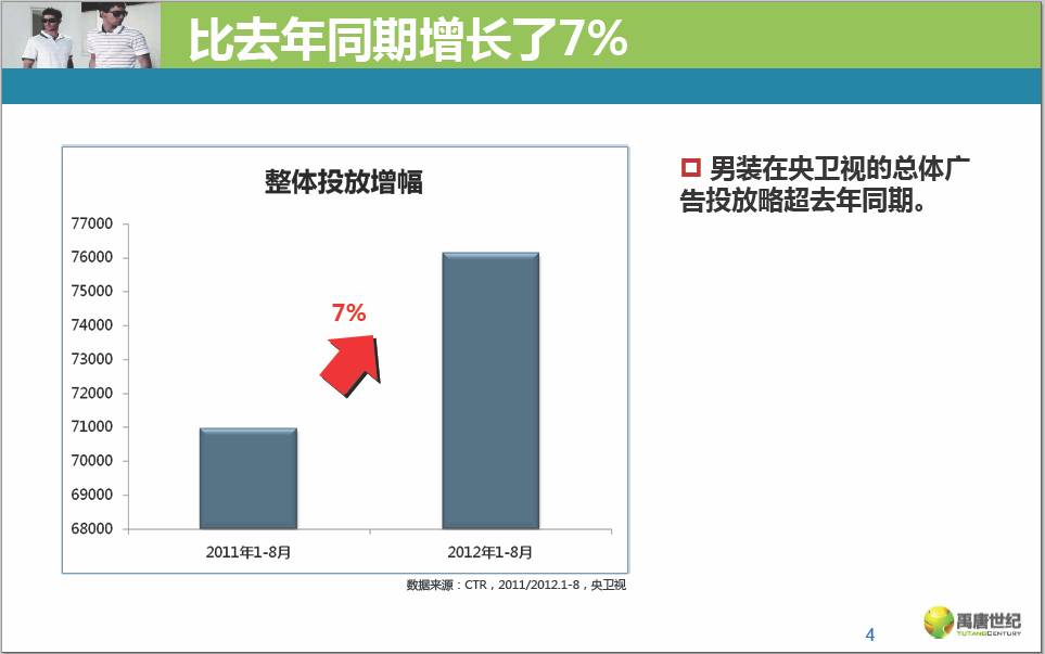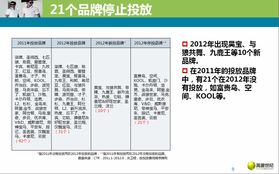 男装行业比去年同期略有增长,有10个新投品牌,21个品牌2012年无投放。