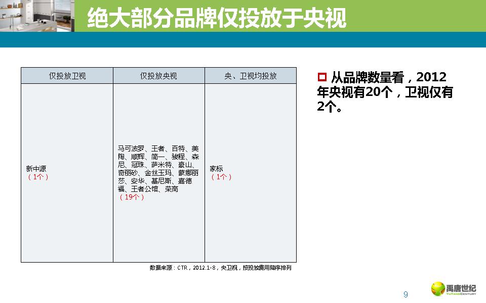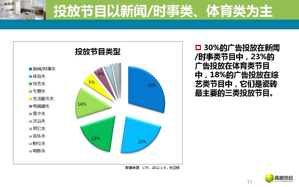 2012年瓷砖行业央卫视广告投放分析