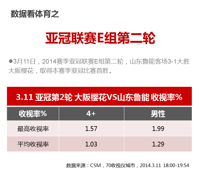 2014亚冠第二轮山东鲁能首胜,最高收视接近2%