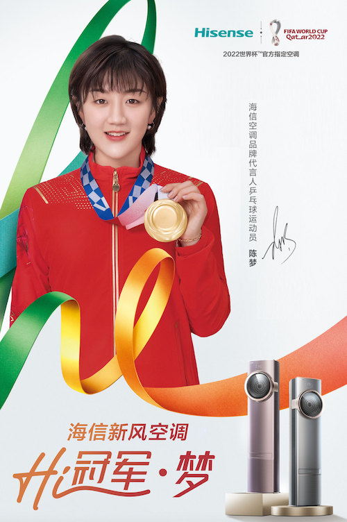 海信空调日前官方宣布乒乓球奥运冠军陈梦成为其品牌代言人。海信空调官方表示:未来赛场上、生活中无数个深呼吸时刻,海信新风都会时刻陪伴的;呼吸健康空气,享受冠军品质!作为即将到来的卡塔尔世界杯的官方指定空调,签约陈梦进一步呼应了品牌“Hi冠军”的营销主题。