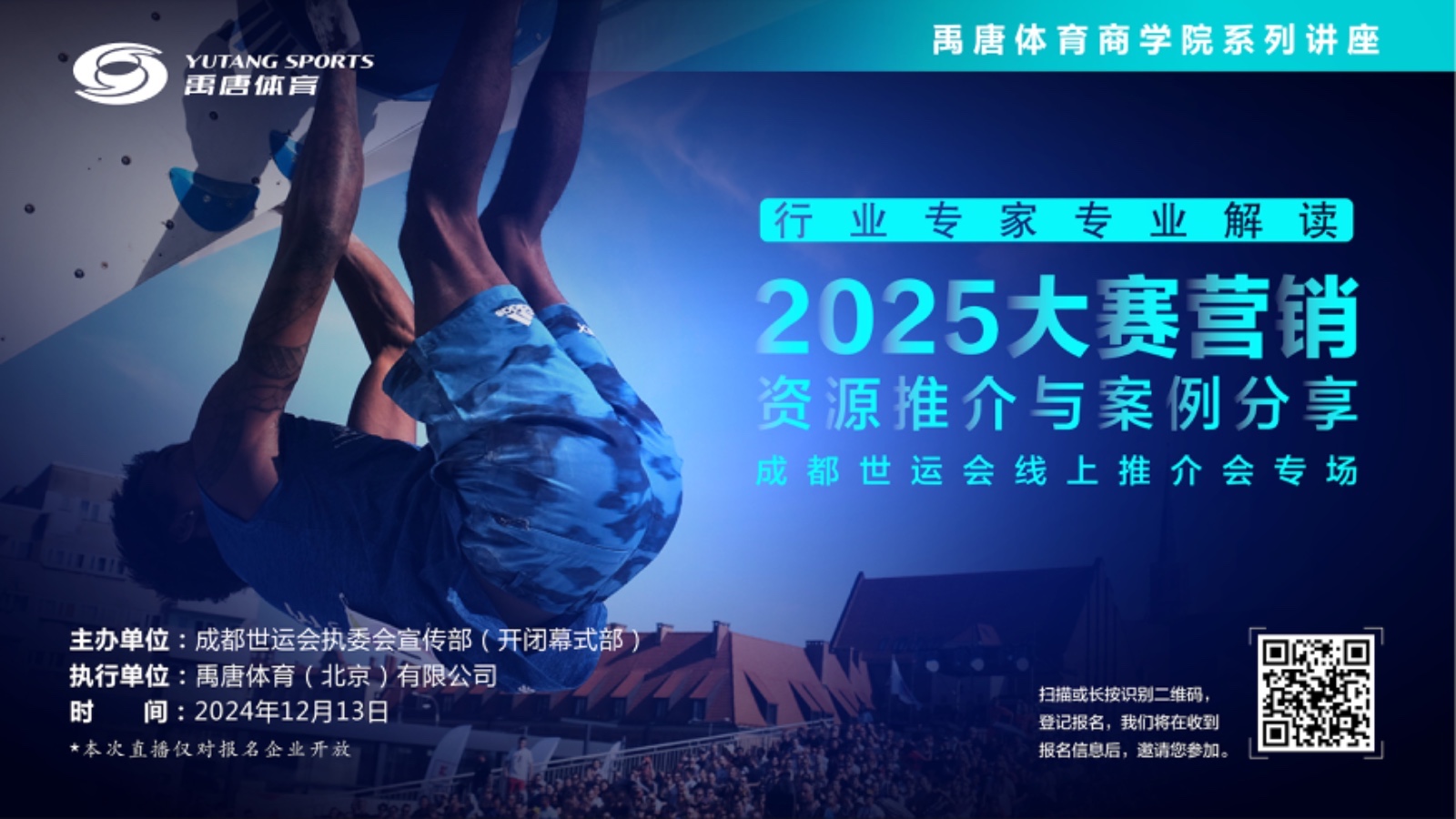 为推进成都世运会市场开发工作,面向全国优质企业高效展示世运会合作价值,传递赞助合作需求,吸引更多潜在客户关注,成都世运会执委会宣传部(开闭幕式部)将联合禹唐体育于12月13日14:00-15:00举办“2025年大赛营销资源推介与案例分享——成都世运会线上推介会专场”活动。此次活动将邀请国内知名企业市场品牌相关负责人参加。