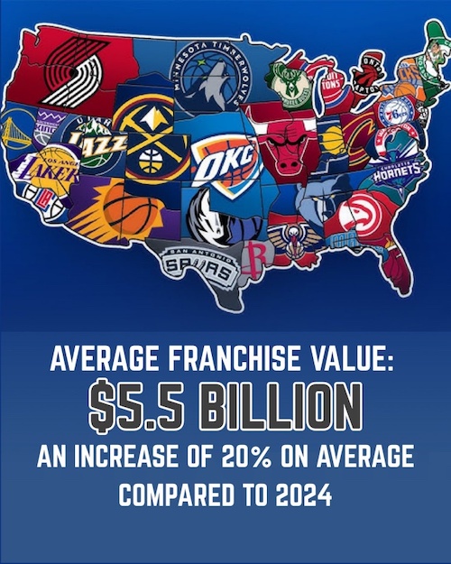 NBA球队平均估值同比增长20%