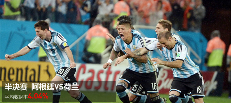 有趣的是本届世界杯的收视最高场次和上一届一样,都是阿根廷和德国的对战场次,不同的是,2010年南非世界杯的德阿大战收视达到11.7%。