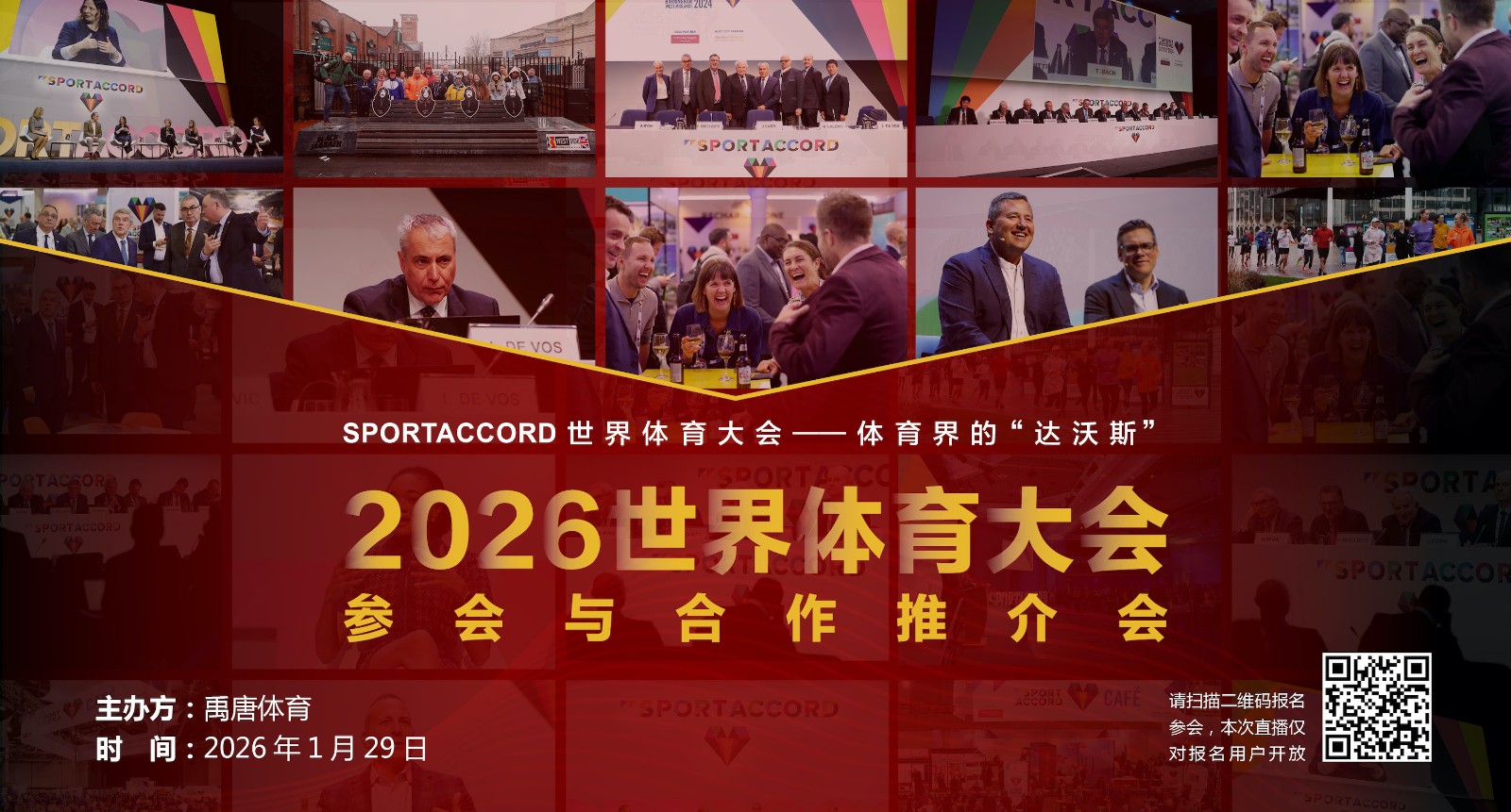 作为多届世界体育大会的首席媒体合作伙伴,禹唐体育除了对大会进行全方位的报道、采访之外,还积极推动国内体育组织、企业在世界体育大会上发声。1月29日,禹唐体育将线上举办“2026世界体育大会参会与合作推介会”直播专场,希望通过本场直播,让更多国内体育产业利益相关者深入了解世界体育大会,进而寻求进一步的合作机会。