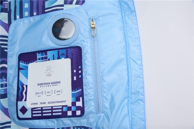中国体育代表团出场装备,以“冰穹蓝”、“雪山白”为主色调,科技感光泽轻薄面料,符合人体工学的绗缝工艺,结合保暖填充,提供舒适轻盈、极致保暖的穿着体验。