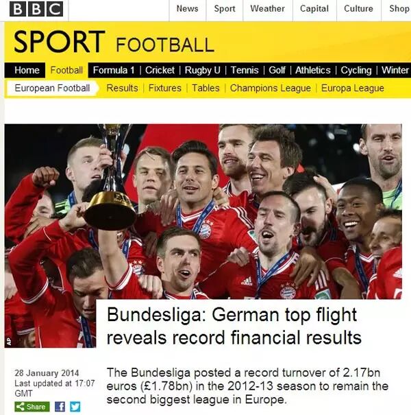 也许在影响力上,德甲还难以进入欧洲前两名,但是从经济角度来衡量的话,德甲稳居欧洲前两名。